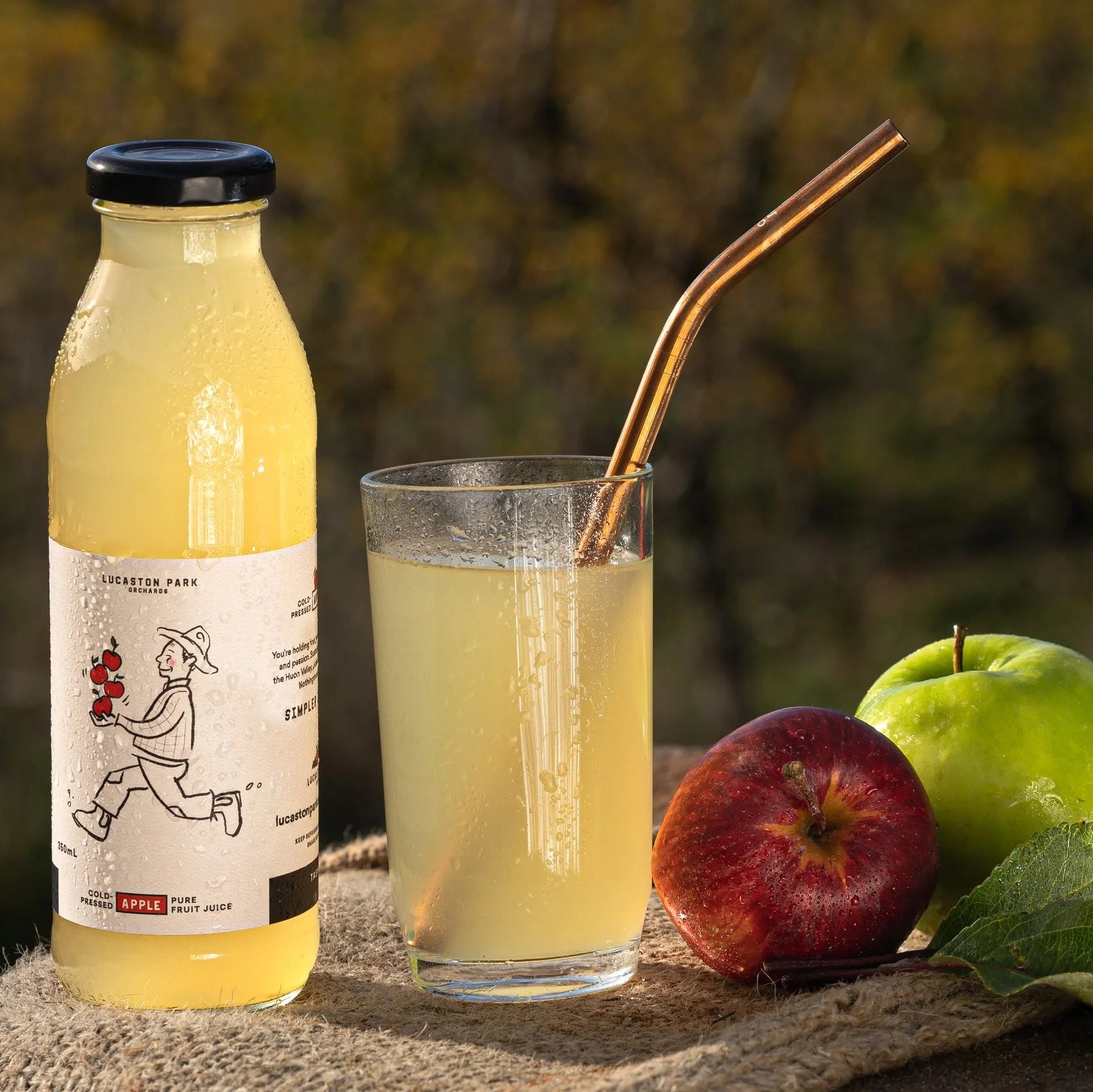1L glass bottle of cold-pressed apple juice from Lucaston Park Orchards in the Huon Valley.