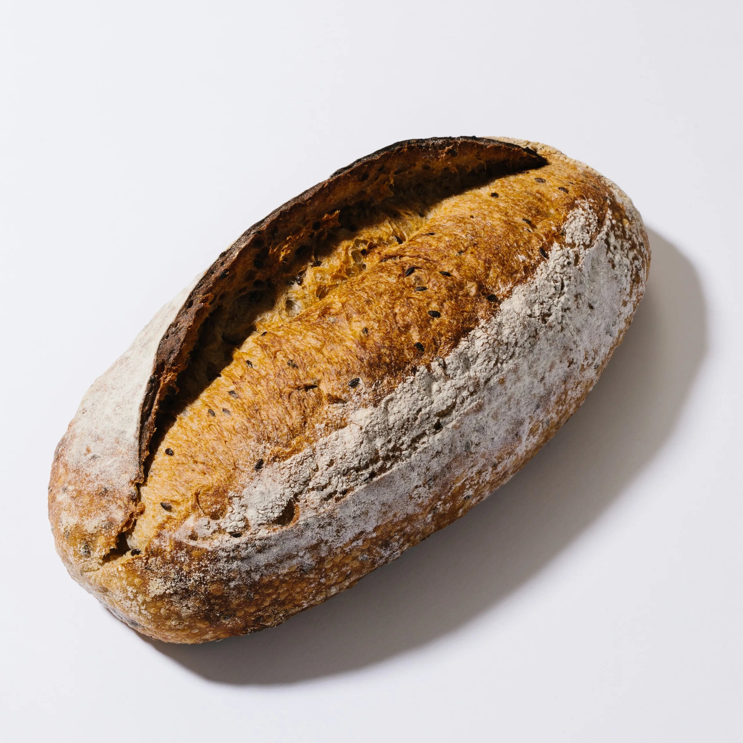 A lightly seeded sourdough loaf.